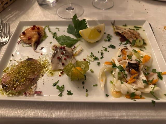9.5/10The seafood was super fresh and delicious at this Sardegnian neighborhood restaurant, with nice touches like complimentary Prosecco to start and homemade mirto to finish. Great service and charming, friendly owner. We recommend the Zuppa di Pesce and raw seafood platter. Also the gnocchetti sarda were fantastic.