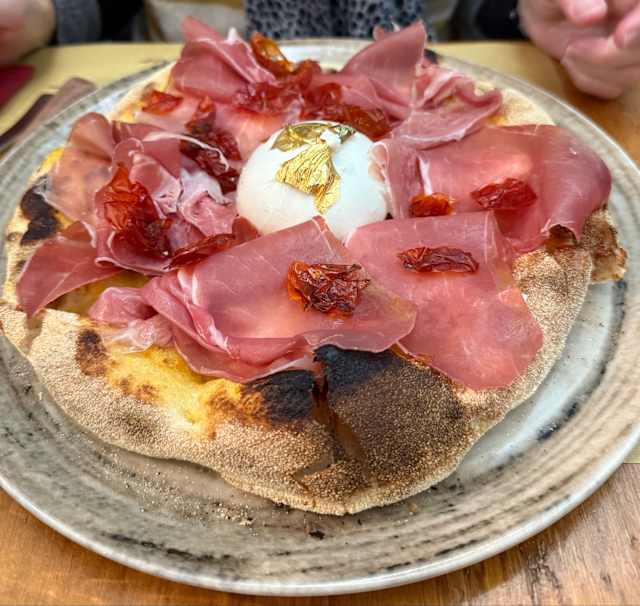 - Porchetta arrost, stracciatella di burrata e cipolla caramellata