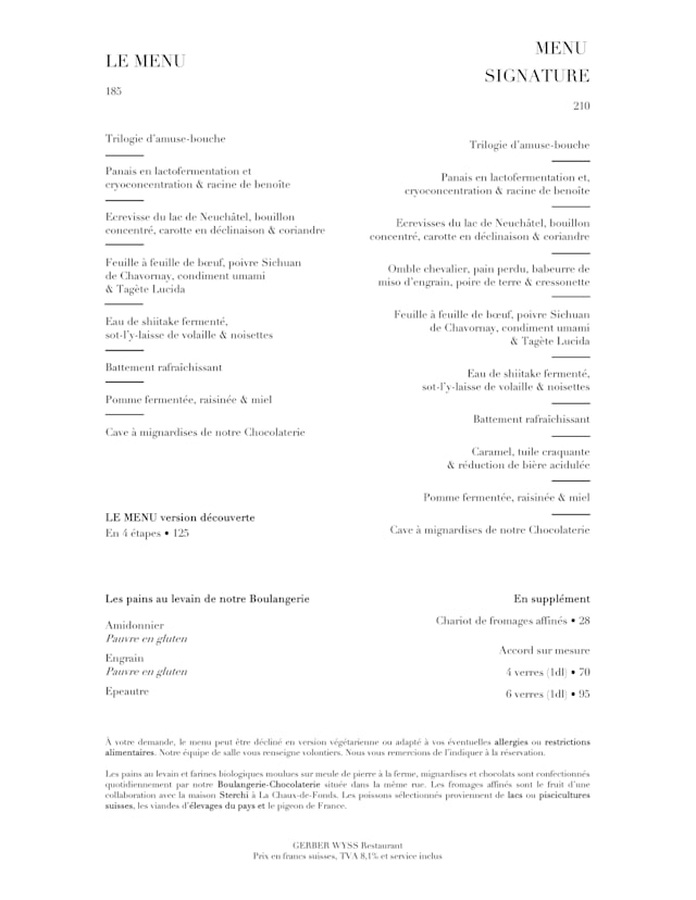 Menu signature CHF 210 per guest
