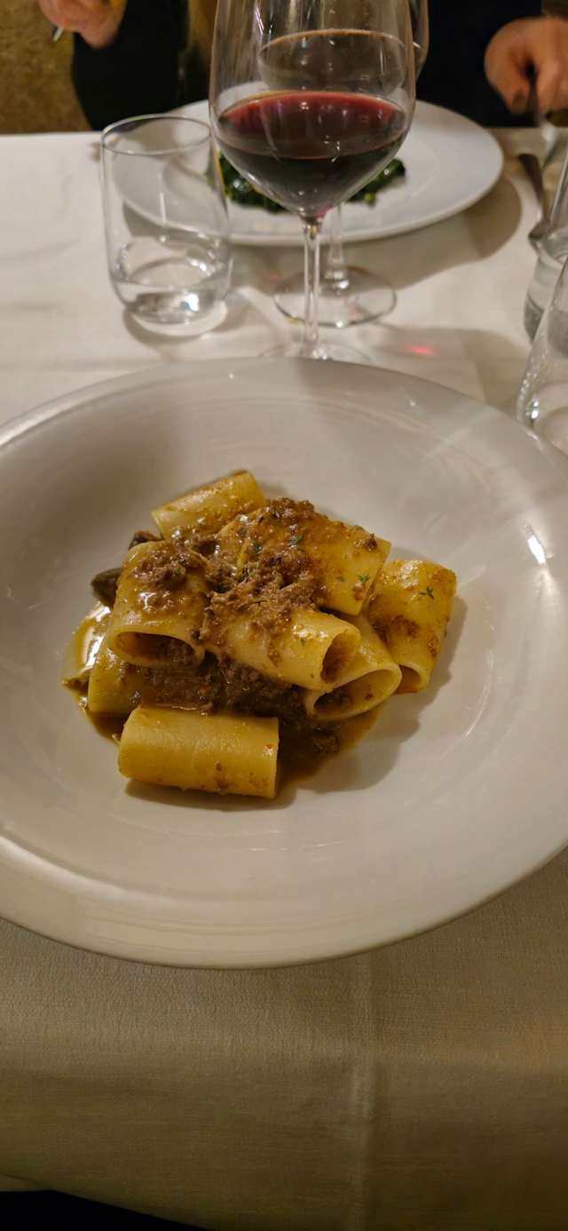 Rigatoni all’amatriciana con guanciale di norcia e mozzarella di bufala