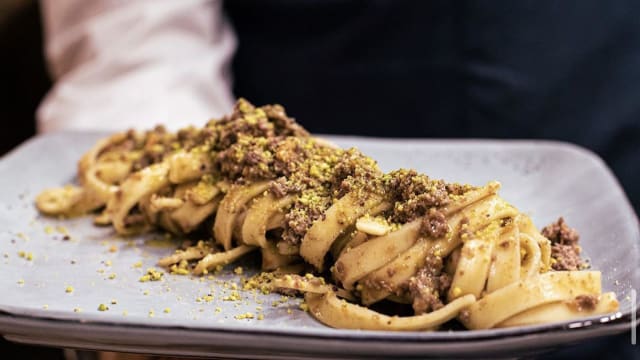 - Tagliatelle al ragü d'asino miso e pistacchio