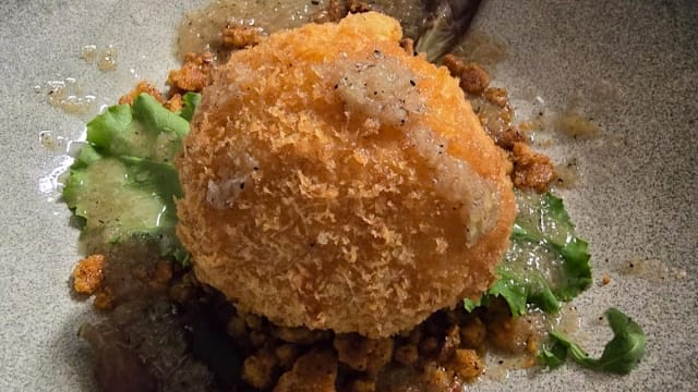 Bocconcino di trippa croccante con crema di pecorino e salsa di sedano