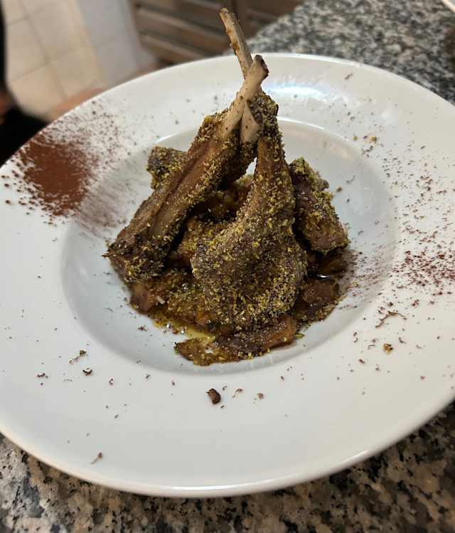 - Crema di carciofi, mais croccante, pomodorini confit, olio EVO, origano