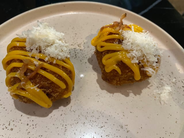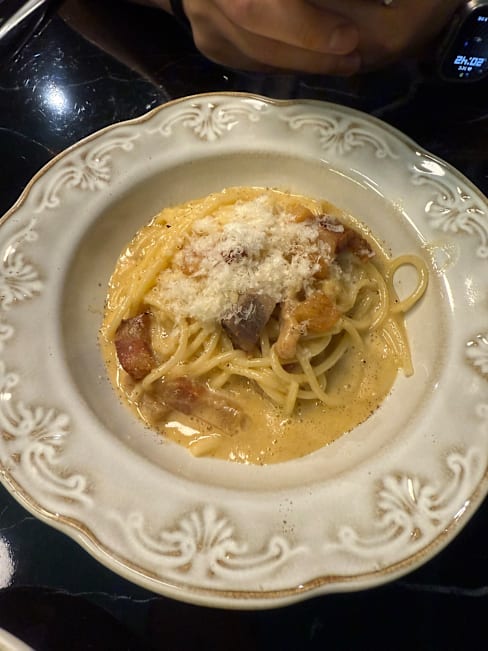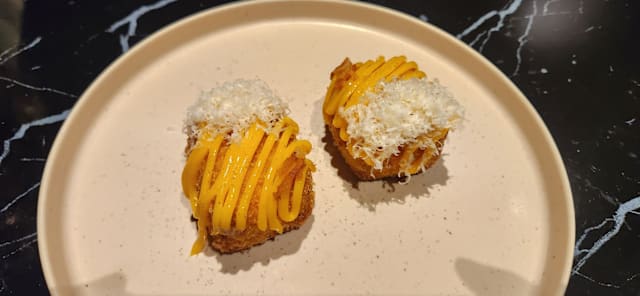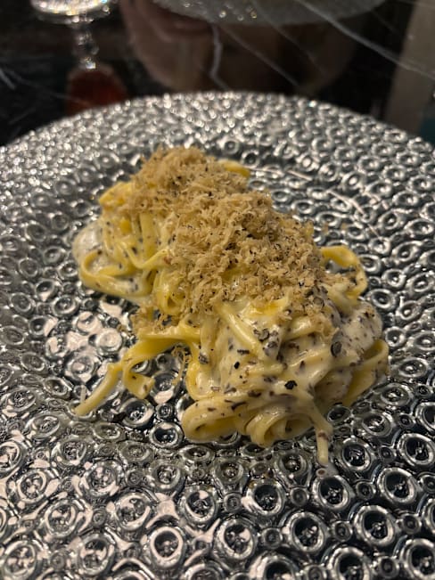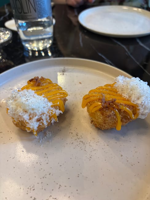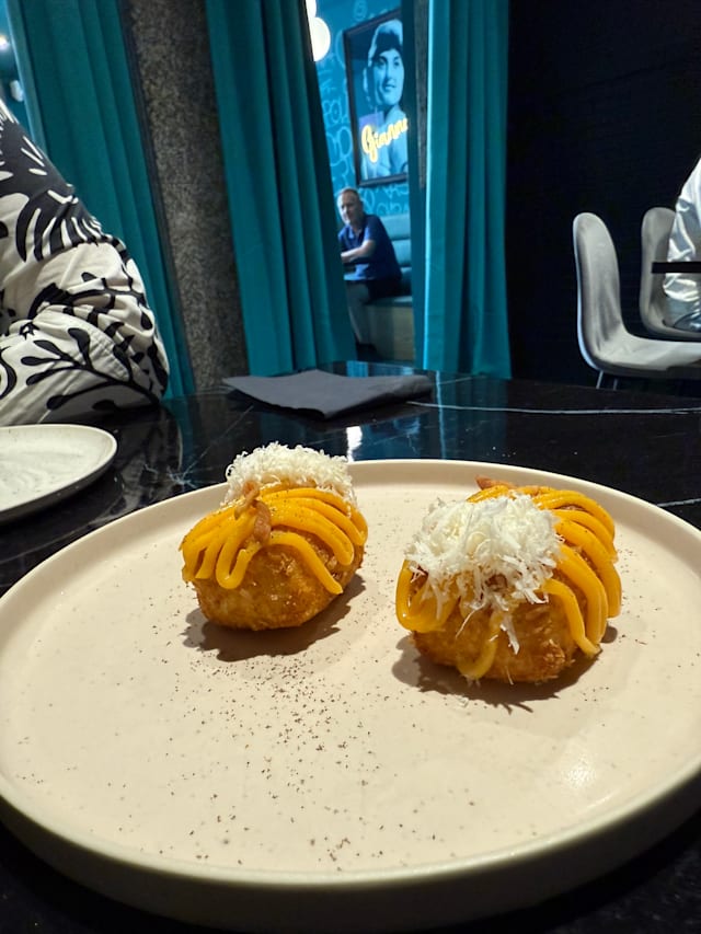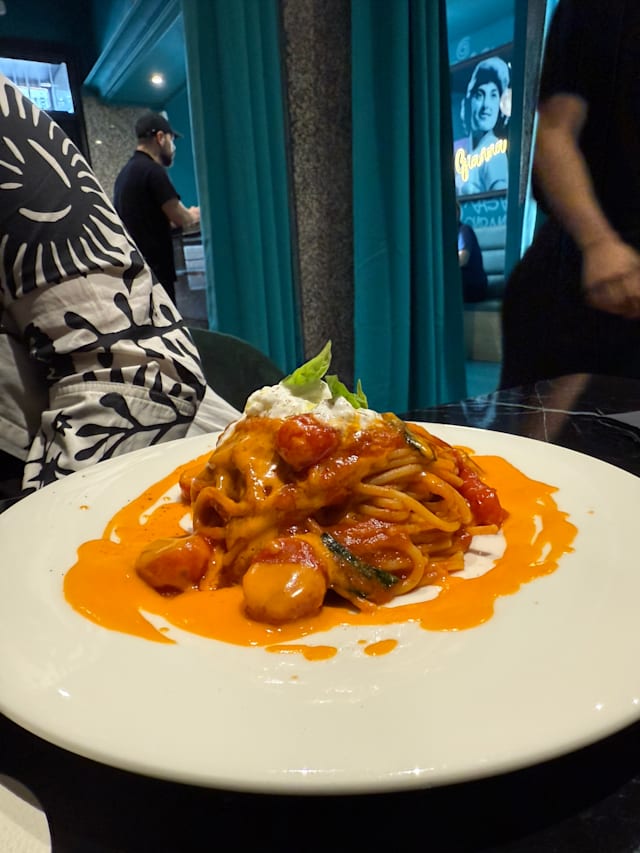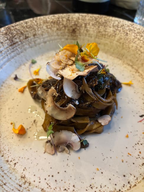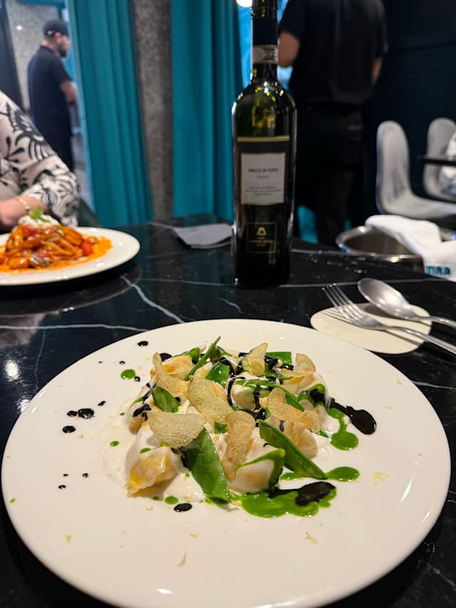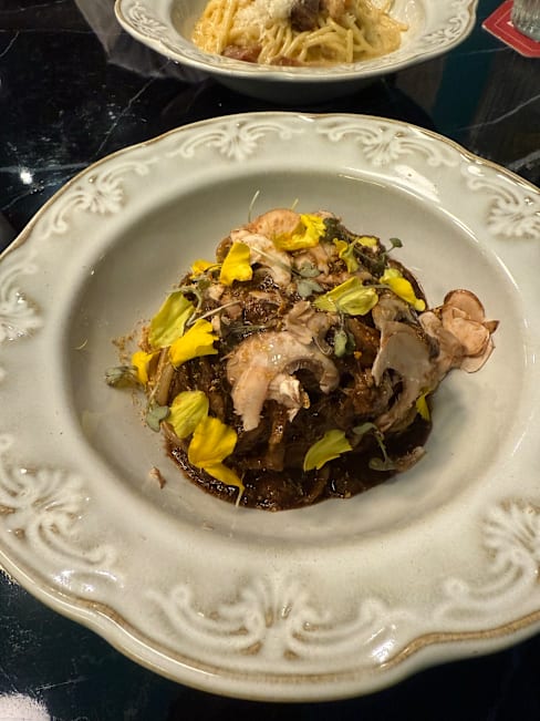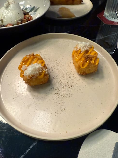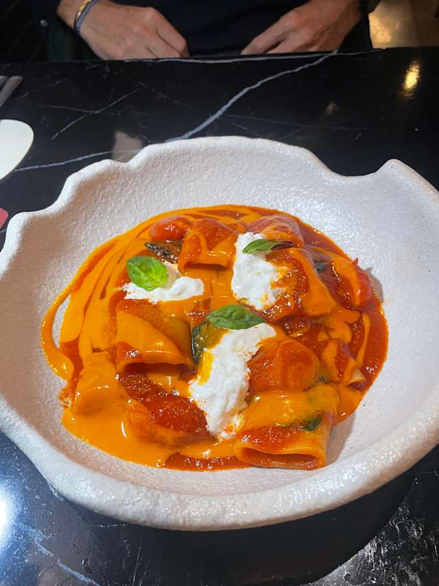 10/10I actually thought that I booked a table for another Italian restaurant that I’ve seen during my past trip to Madrid in January but it turned for the best! We arrived for lunch so we shared only one appetizer - the fried pizza and shared 2 main courses- the rabbit pasta and the chorizo and pumpkin papardella. An apparol shpritz and Campari shpritz to acompny and a tiramisu with a coffee to end this great experience! All portions turn excellent! Definitely biding again!