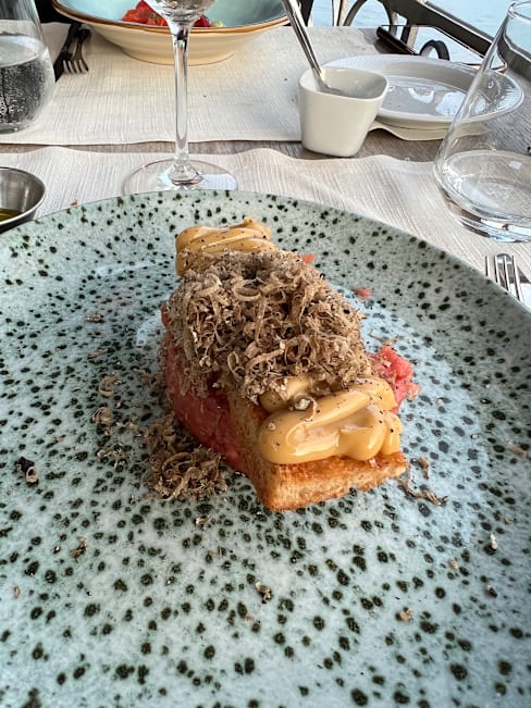 8/10Food was ok Wine was very good ! The location is amazing! Overall is good, a little over price for the region 140€ for 2 with wine and prosecco. Since the view is one of the best you can get it’s a good place for a nice diner ;)