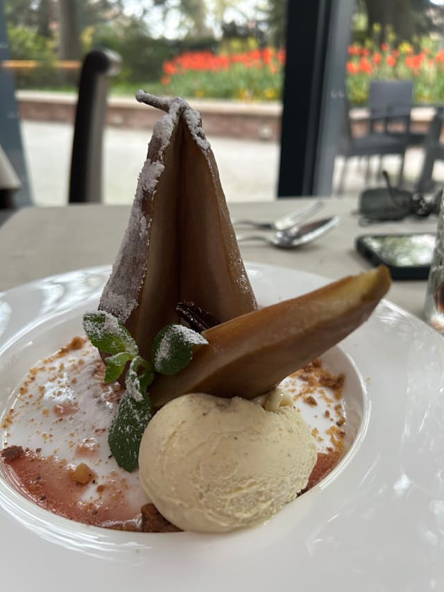 10/10The atmosphere is lovely. The service and staff is very friendly and attentive. There are strict sanitary measures in place, temperature taking, and social distancing is very well respected with the table arrangements. The food arrived in a timely fashion and it was all fresh and delicious, nothing less. The presentation on the plates is equally appealing. I had an almost perfect meal here, save for one bit of unpleasantry. The beverage prices. I didn’t think twice to order a beer for my father and 2 glasses of house white wine over the course of dinner. Beer - €8 small draft Wine - €12 per glass !!!! It’s ridiculous and exaggerated, honestly. Most fine restaurants in the area charge €6-10 for some of the finest wine by the glass. I was taken aback by the overinflated price. It’s obvious that at this type of restaurant, the food quality and atmosphere merits higher pricIng, but the beverage prices are insane and not merited.