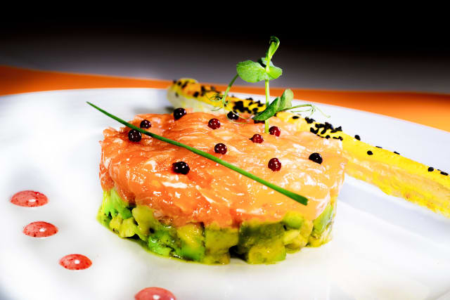 - Carpaccio di salmone Norvegese marinato agli agriumi, panna acida e melograno
