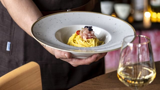 Aglio olio e tartare di ricciola