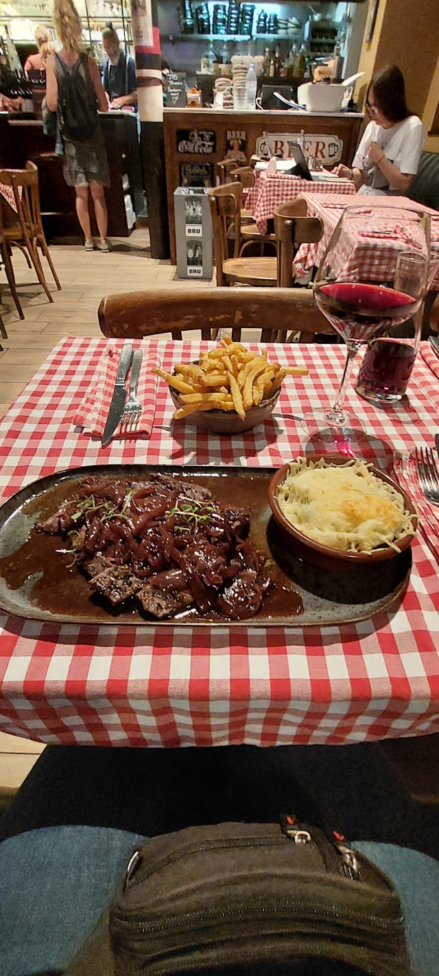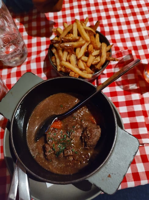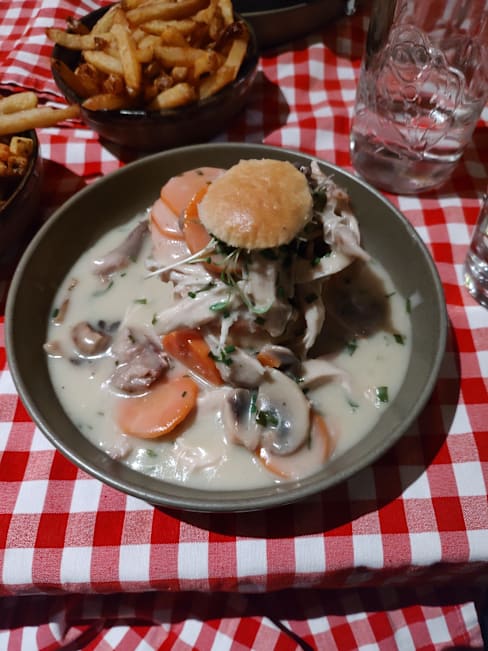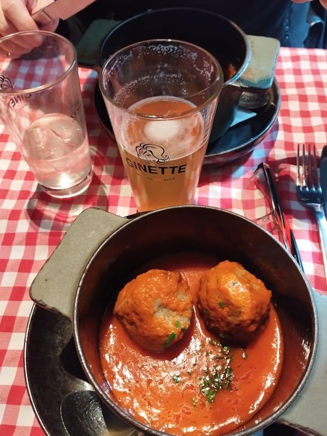 8.5/10Very pleased to have chosen this Belgian bistro. Really enjoyed the boulettes in mushroom sauce and the wine was reasonably priced. The service was friendly, slow to start but then everything arrived quickly. Just shows that cooking is fresh.