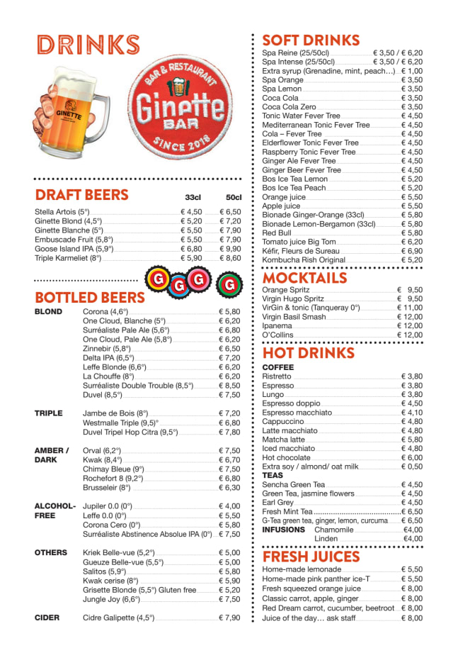 10/10Excellent service, Ginette beer fruit is wonderful.