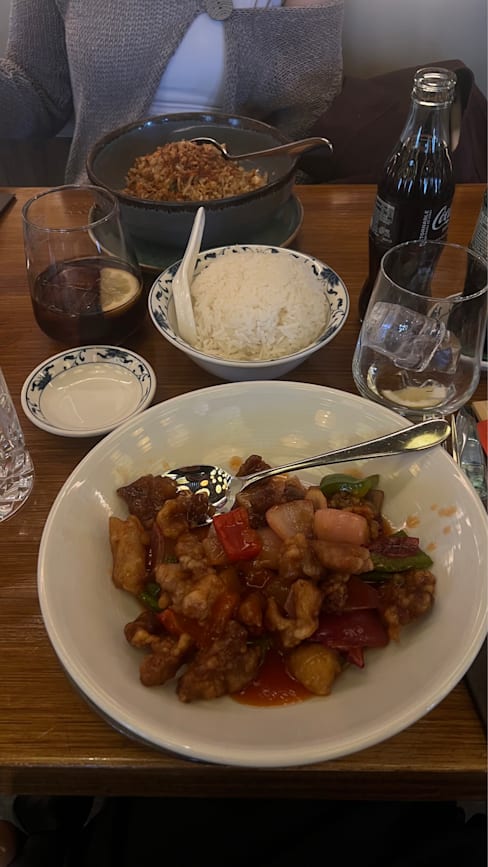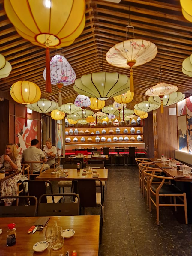 6/10The place is very well located and the decoration is very nice. The food, on the other hand, was not really good. We order several different dishes ( noodles, rice and meet) and nothing was tasty :/ my husband really likes protein and asked what dish came with lots of meet and they suggested a specific one, They were supposed to be breaded strips of meat. We couldn't find any meat! We called the waiter and asked and he said the meat was cut very thinly, but it was there. 16 euros for a meat dish with no meat :/ My chicken noodle soup wasn't tasty and I left almost all of it. My mother liked her rice dish, it was 99% rice and very little meet and vegetables but it tasted ok (the only positive thing). We really like oriental food and we've eaten in much simpler and cheaper places in Madrid where the food was better. We won't be back :/