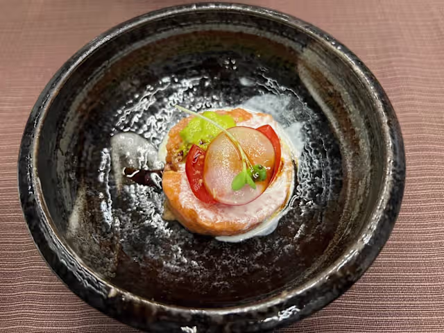 - Mango avvolto salmone e avocado con salsa sesamo