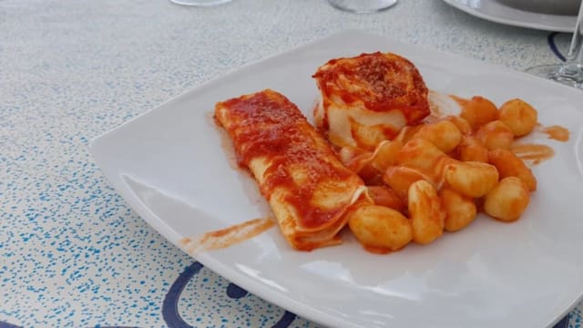 - Antipasto di mare,paccheri ai frutti di mare,frittura di pesce,insalata verde.