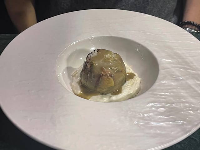 5/10Starter was different. Main course indifferent. Staff very cool. Disappointing bearing in mind the reviews and cost. Better options available in the side streets with lower costs and better atmosphere.