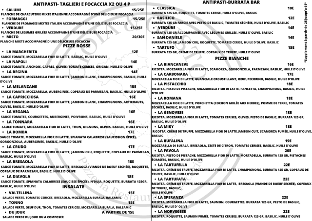 10/10Small, intimate restaurant in a quiet area. Great pizza! Chef made good time to serve and give good service. C'est manifique!