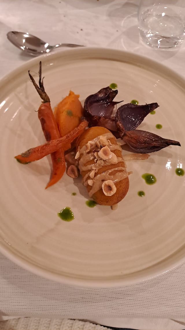 Spuma di patata al tartufo, porcino e cipolla arrostita
