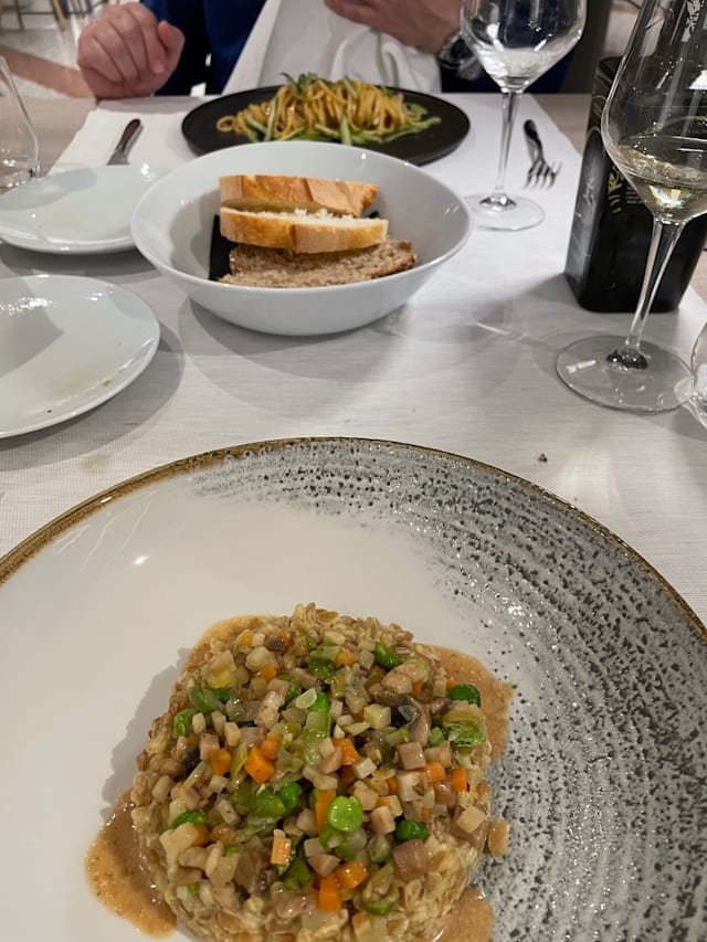 Farrotto allo zafferano, ragù di verdure di stagione, burro di nocciole