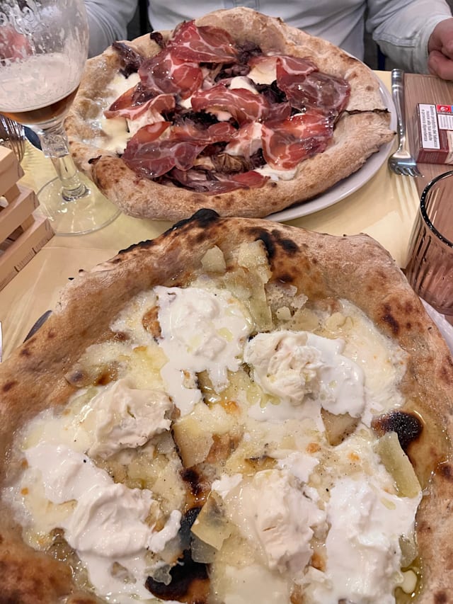Bocconcino di mozzarella fresca, radicchio spadellato, coppa sant'angelo di brolo, gorgonzola morbido colombo al cucchiaio, olio di nocellara, basilico.