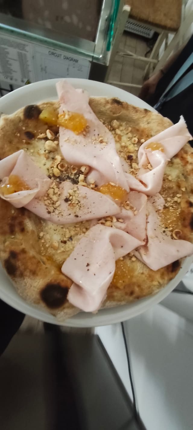 Bocconcino di mozzarella fresca, prosciutto di praga arrosto, gorgonzola morbido colombo al cucchiaio, noci, olio di nocellara.
