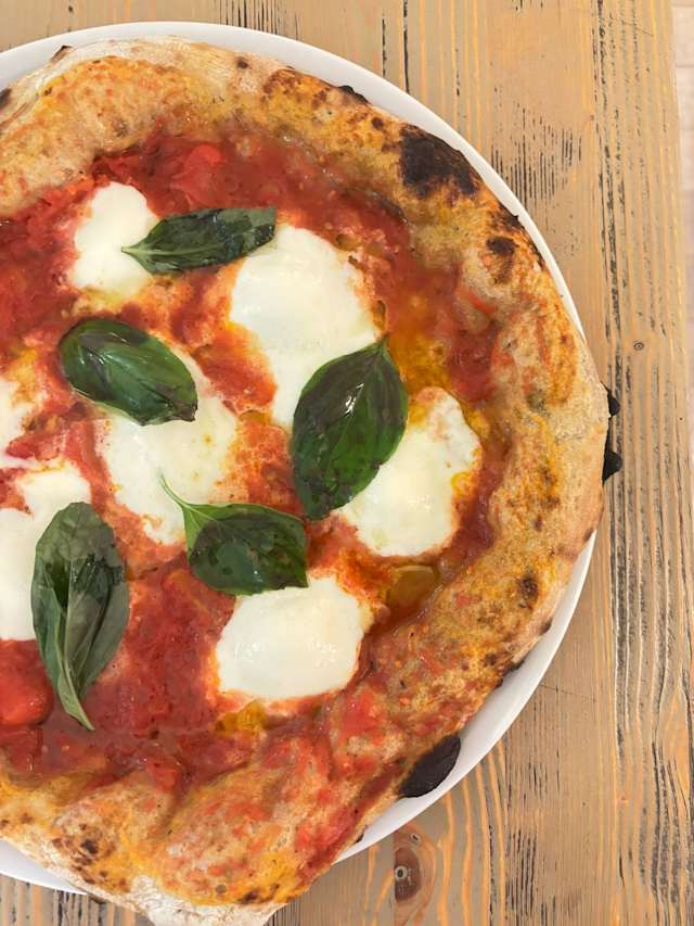 - Pomodoro san marzano, sarnese nocerino rotto a mano, bocconcino di mozzarella di bufala, pomodorino ciliegino secco, olio di nocellara, basilico.