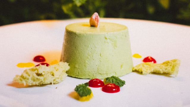Pan brioche, polpo, stracciatella, salsa ai pomodori arrostiti, emulsione di basilico e arachidi alla paprika
