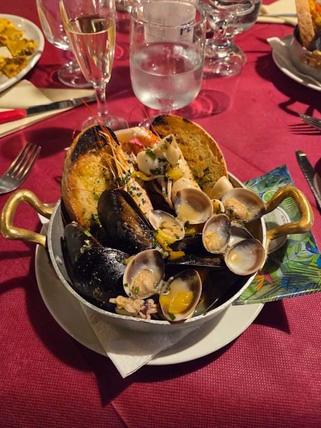 Zuppetta di frutti di mare e crostacei con crostini agliati