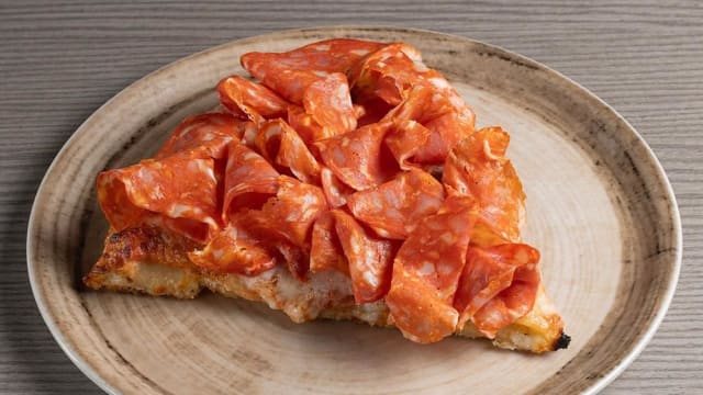 Pomodoro di carbone conserve, mozzarella caseificio spinelli, origano, spianata piccante, zola, n’duja di spilinga, rucola