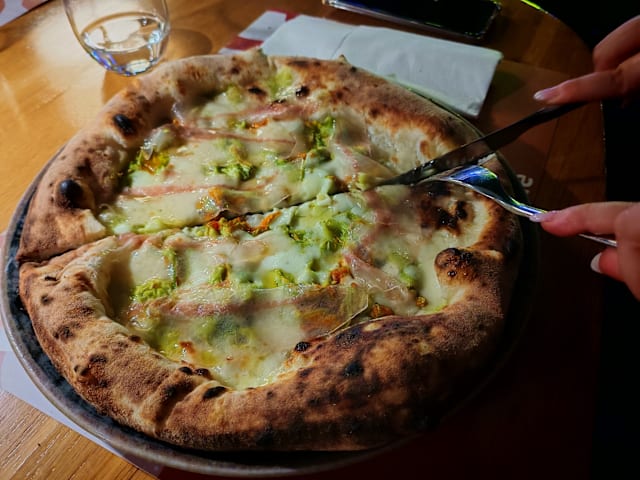 10/10This is better Pizza than the original in Naples. Amazing and delicious and kind wait staff. Wine and beer were tasty also!
