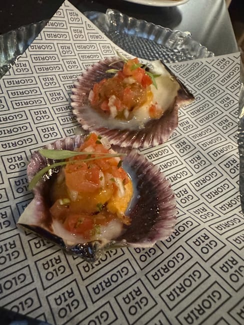 10/10This is our 5th time dining at Gloria in Oviedo by Nacho Manzano. Our first visit was in 2022, then several times in 2023 & again last night. The service provided by Jaime (Jimmy) & Johanna, the manager on duty was wonderful. They welcomed us back warmly, with true hospitality. We chose the 7 course Tasting Menu which included delights from the sea, land & garden. Delicious. A wonderful bottle of Godello capped off another memorable evening at this gem of a restaurant in Oviedo.....