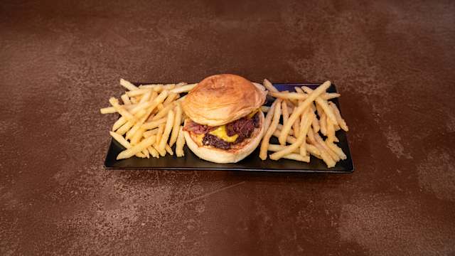 - Bun, insalata, pomodoro, hamburger, cheddar fuso, bacon croccante, salsa gnammy