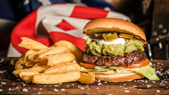 - Bun, insalata, pomodoro, hamburger, scamorza affumicata, speck croccante, mayo ai 3 pepi