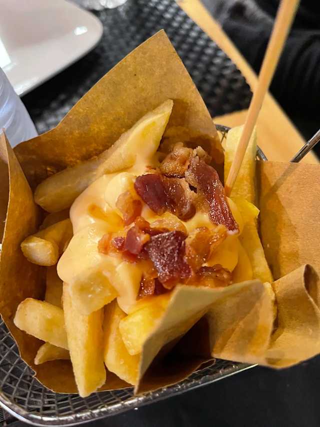 - Patatine fritte, bacon e salsa cheddar.