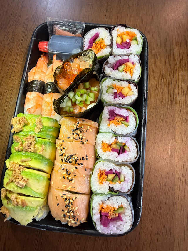- Thon, œufs de poisson, poire, radis, chou rouge