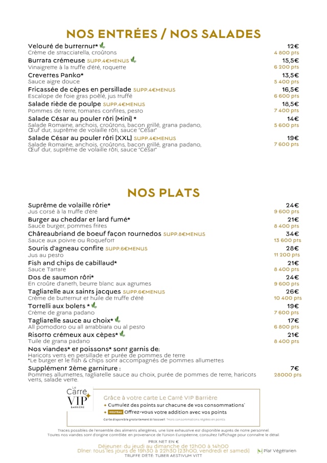 Formule Casino 19€ (uniquement au déjeuner)€19 per guest