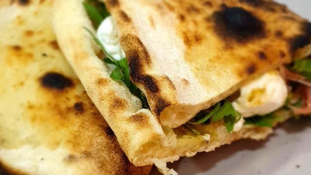 Demie pâte à pizzas pliée et garnie au choix de crème de pistache ou de Nocciolata et saupoudrée de sucre glace