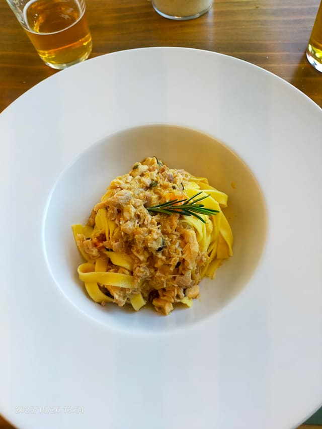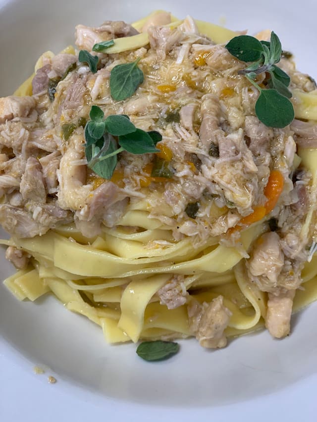 Tagliatella all'uovo con ragù bianco di coniglio e verdure