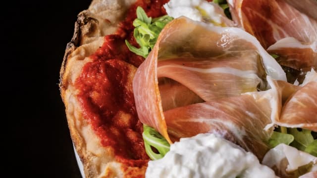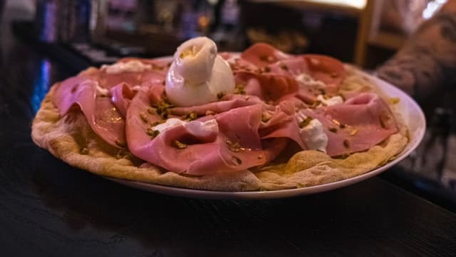 200 gr. di carne di manzo, stracciatella, pesto di pistacchio e granella di pistacchio
