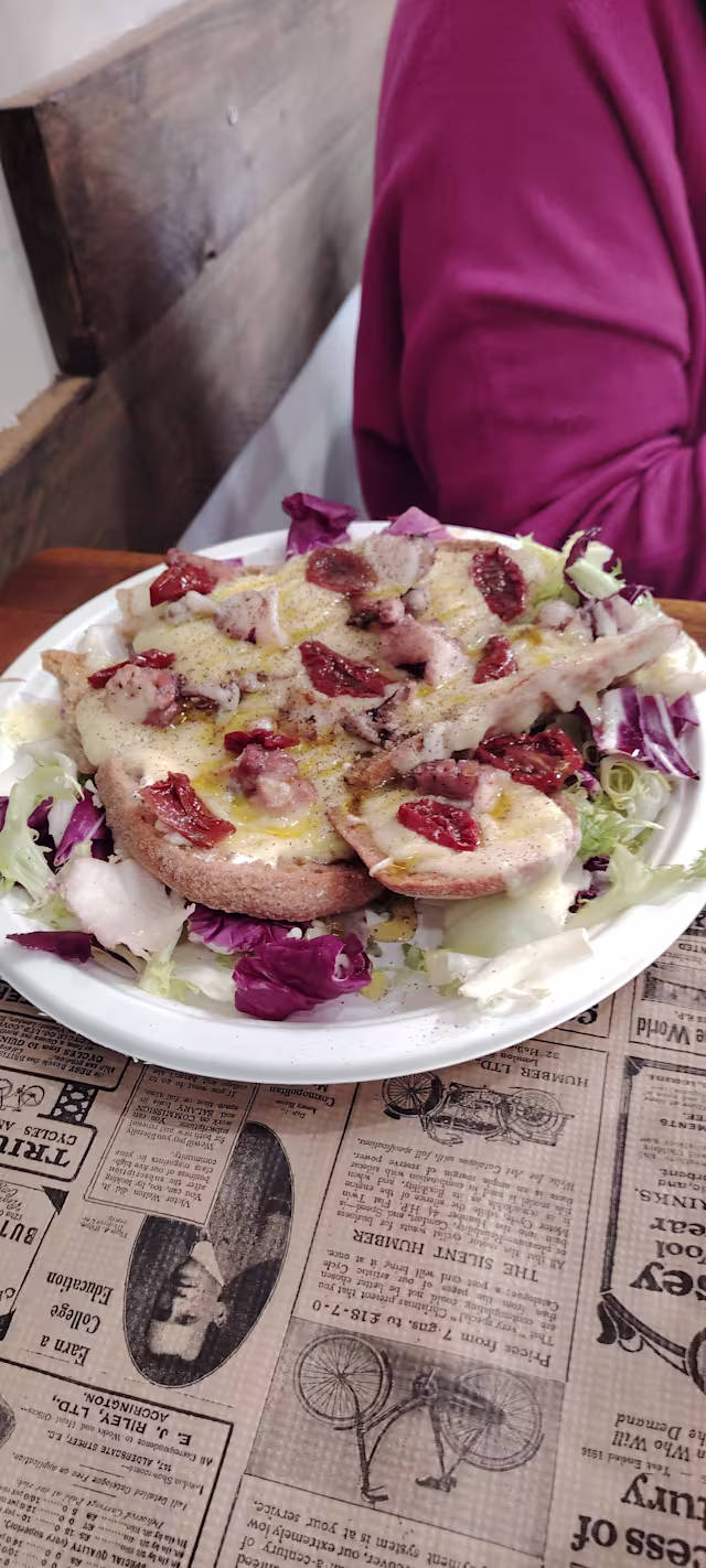 - Nduja naturale IGP. crema di pomodori secchi. Soppressata piccante, pecorino, insalata, olio EVO