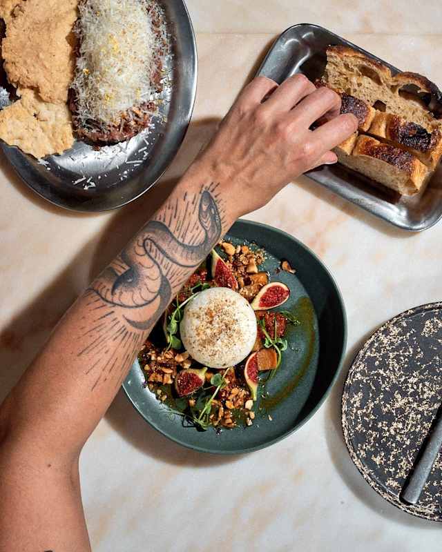 - Sandes de couve coração, frutti di cappero, iogurte de ervas frescas e gorgonzola