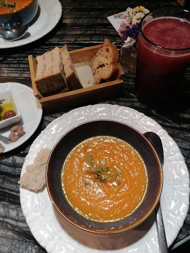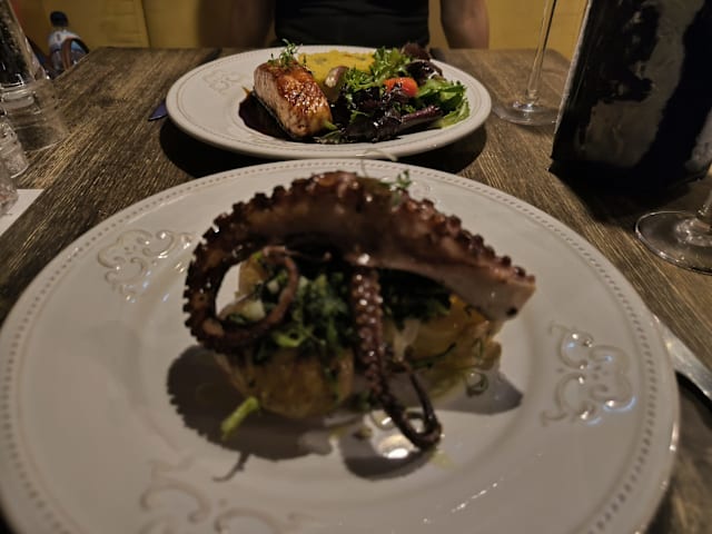 9/10+2Great atmosphere, some of the dishes delicious and worth its price. Exceptionally delicate octopus, smooth and rich risotto. But some other need improvement. Blunt velvet cake, hard and chewy pork, salad made with unripe tomatoes. While three pieces of asparagus with olive oil priced 10€ seem to be a bit of an exaggeration. However the staff was extremely kind, polite and helpful.