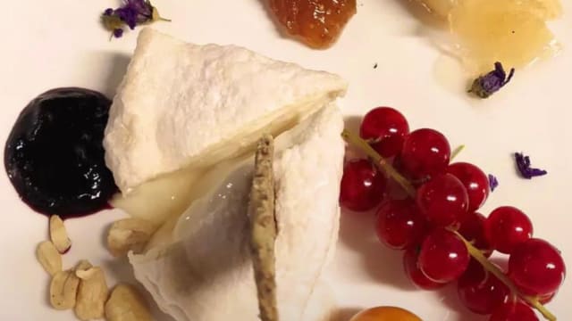 Eccellenze di formaggi dei migliori affinatori (pecora, mucca, capra ed erborinato) accompagnati da mostarda, miele, frutta fresca, fiori edibili ed un bicchierino di passito.