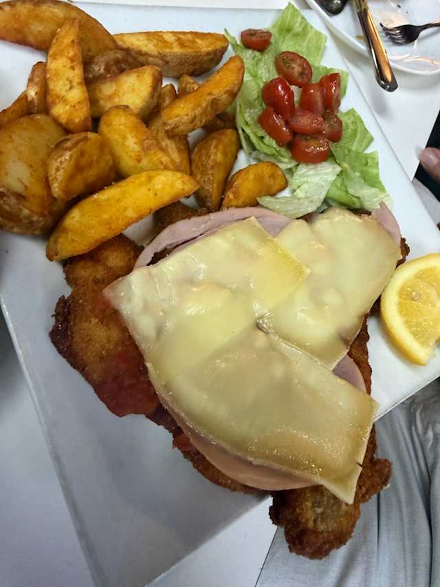 - Milanesa de ternera con patatas y ensalada