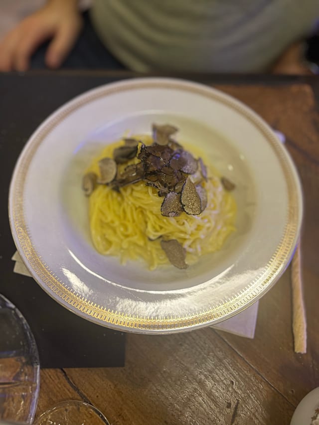 9.5/10The whole experience was one of fine dining, the host presented us the menu thoroughly and answered our questions. The menu itself was carefully put together in a traditional piedmontese way. The egg with blue cheese cream and truffles was heavenly. The truffle tajarin was sooo light, the pasta were delicate and silky, exceptional mouthfeel. We had a local spumante brut, not very dry, that paired wonderfully with the food.