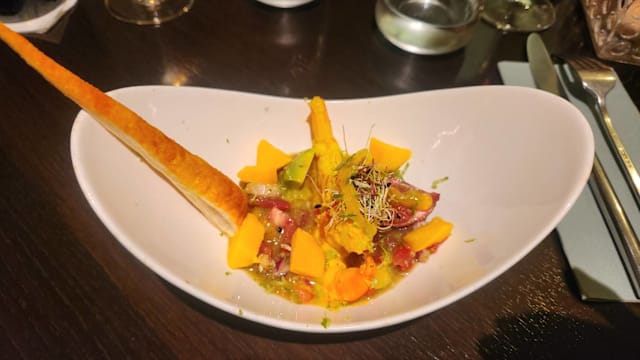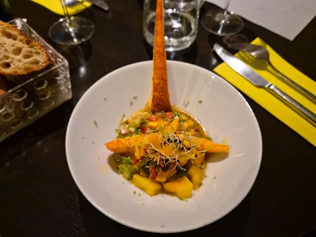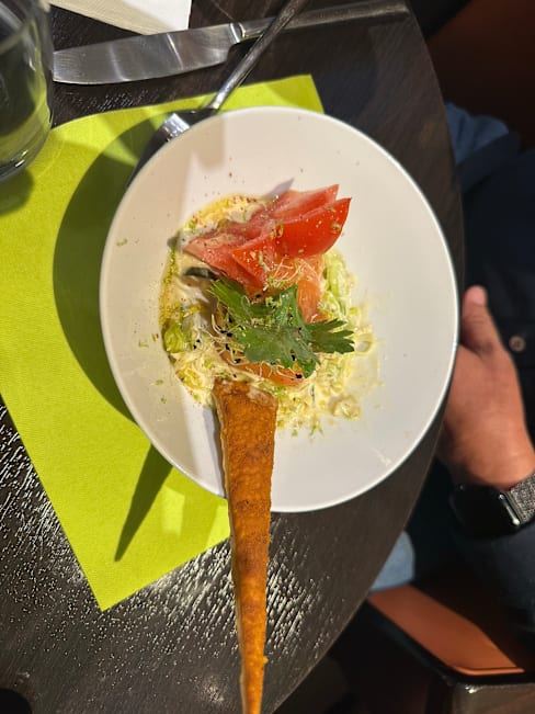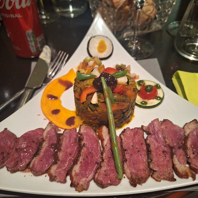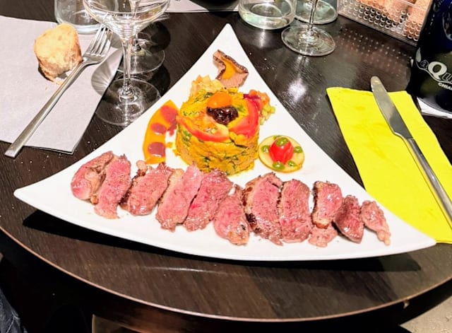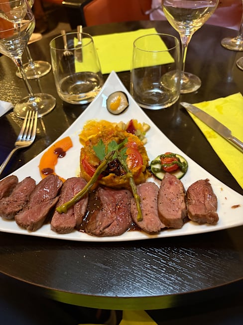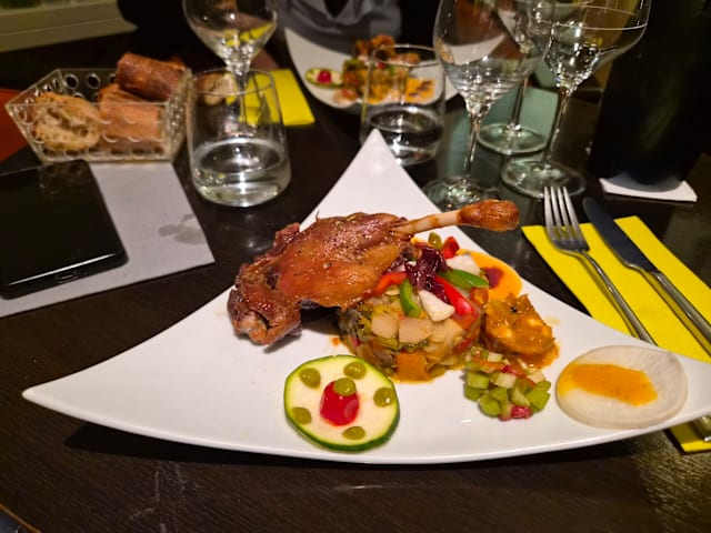 5/10I am guessing they have a different Chef than they used to because this was by far the worst meal I had in Paris. There were way too many flavors going on, for instance, duck on a chocolate mole sauce, served with ratatouille that has curry in it and some strange things surrounding it like a slice of squash with fennel and a tomato with pesto. The starter had smoked salmon with tomatoes, ginger and a huge amount of leeks and shallots, which gave the dish an overwhelming onion flavor. However, the wine pairing was fabulous. Each and every wine was really and truly delicious. This place serves cheeseboards and charcuterie, so I think the perfect thing to have here would be the wine pairing plus cheese and charcuterie. The owner was very lovely and discounted our bill because she saw that we barely ate anything