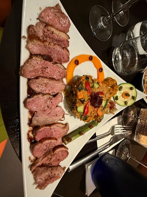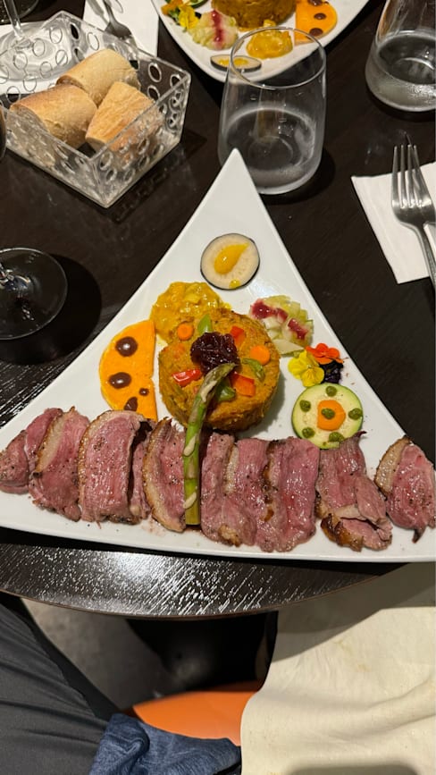5/10I am guessing they have a different Chef than they used to because this was by far the worst meal I had in Paris. There were way too many flavors going on, for instance, duck on a chocolate mole sauce, served with ratatouille that has curry in it and some strange things surrounding it like a slice of squash with fennel and a tomato with pesto. The starter had smoked salmon with tomatoes, ginger and a huge amount of leeks and shallots, which gave the dish an overwhelming onion flavor. However, the wine pairing was fabulous. Each and every wine was really and truly delicious. This place serves cheeseboards and charcuterie, so I think the perfect thing to have here would be the wine pairing plus cheese and charcuterie. The owner was very lovely and discounted our bill because she saw that we barely ate anything