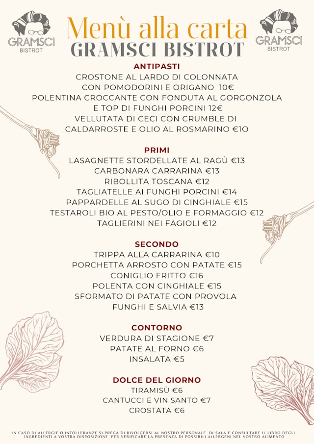 Menu' del pranzo dal martedì al venerdì€13 per guest