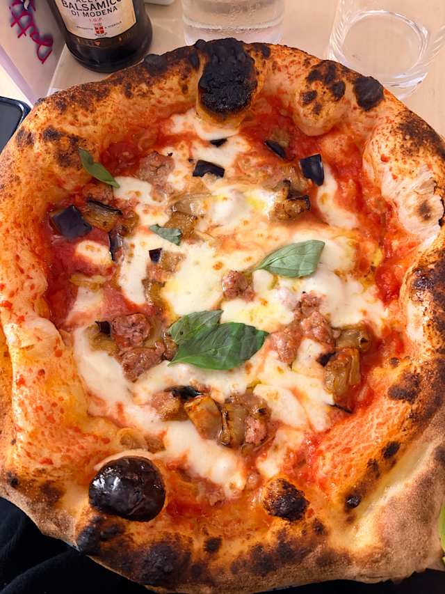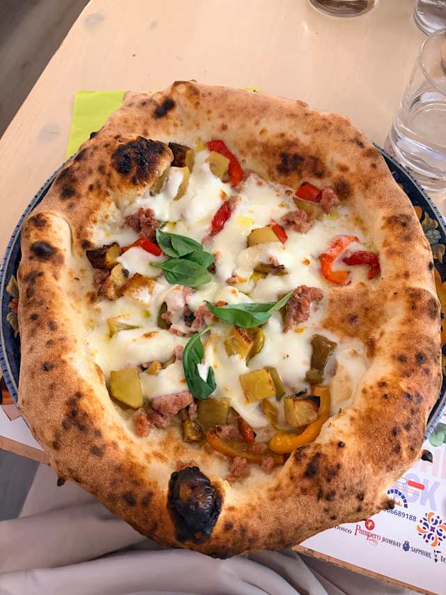 - Provola affumicata di agerola, ‘nduja calabra, salsiccia locale tastè, pomodoro di san marzano, filetti di peperoncino, basilico e olio E.V.O.
