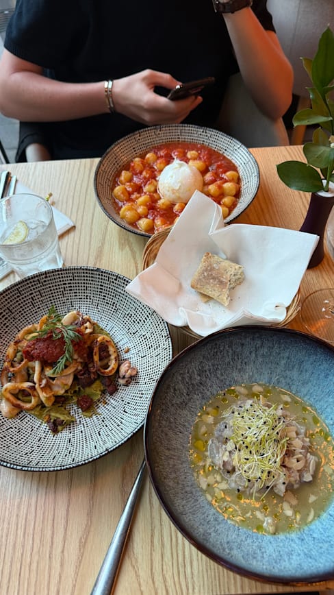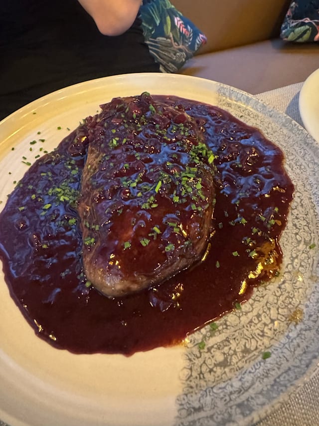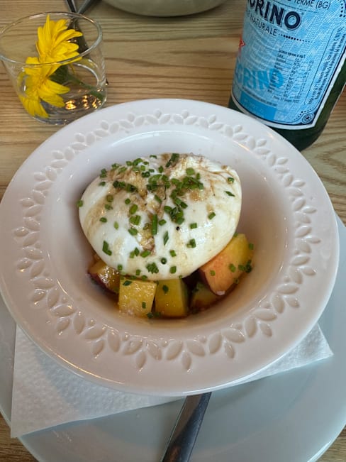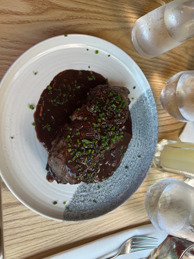 9.5/10Found this little gem using the app and wasn’t disappointed. Super tasty food and the service was very warm and friendly. My kids ate the pesto pasta and thoroughly enjoyed it, my husband had a very pleasant entrecôte steak and a sauce to die for with delicious little rustic potatoes, and, as i wasn’t very hungry, I ordered the peach, nectarine and burrata starter that was delicious. Whilst the others were full, I indulged in the rich chocolate fondant with fresh cherries. Overall and really pleasant meal. I took off one star for ambiance as it was a slightly odd location and the seating area is in a glass box on the street, but don’t let you put you off at all. Once seated it was very comfortable and pleasant. Nice table setting and comfy chairs.