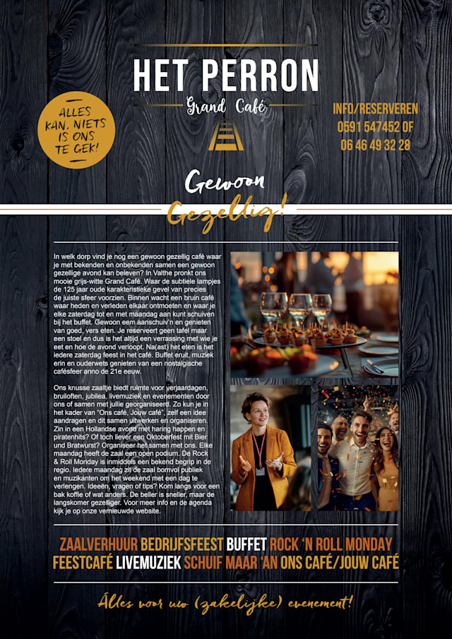 Het grand café voor de Valthenaar, buurtdorpeling en de toerist