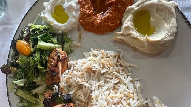 Surtido de brochetas: shish taouk, shish kafta, shish carne de cordero